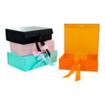 Dress boxes are ideal for online fashion shops, boutiques, and bridal wear designers. They make your product stand out while ensuring that it reaches customers safely and in its best form. Some of them have magnetic tops, ribbon ties, or handles to enhance their convenience further.